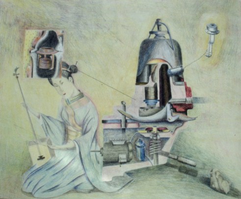 Motor sedd från vänster sida, akryl på pannå, 73×100