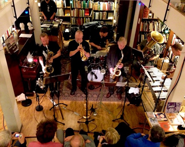 Det är en genomgående bra konsert (som spelades in och antagligen kommer i tillplattad form så småningom) men det är som allra bäst i början och slutet. Det är ju när man konfronterar coolt lyriska melodier, som Börje Fredrikssons ”Adagio con espressione” och Jan Johanssons folkjazziga ”Visa från Utanmyra”, med friformigt atonala utbrott som det verkligen händer något. Och då man verkligen hör att knasterelectronican (levererad av Mats Gustafsson och Dieb13) bor granne med den coola jazzen.
