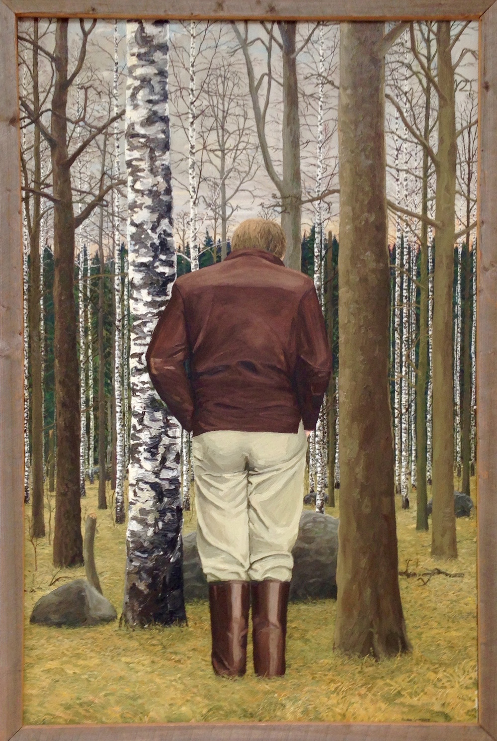 I Skogen II ser vi kanske samma man, fast denna gång avporträtterad bakifrån och med andra kläder. Stående ute i skogen i ganska högt gräs blir han nästan ett med träden (varav flera är björkar). Huvudet är lätt framåtlutat. Han kanske har fått syn på något.