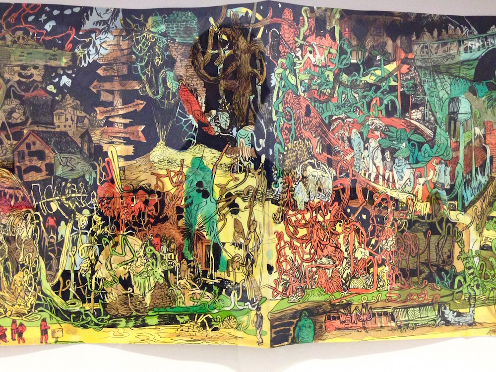 Även här är det upphackat som ett collage, men mer hallucinatoriskt och organiskt och berättande. Henry Darger kommer upp som en referens i mitt huvud. Eller mer specifikt: en Henry Darger uppdaterad till det psykedeliska 60-talet.