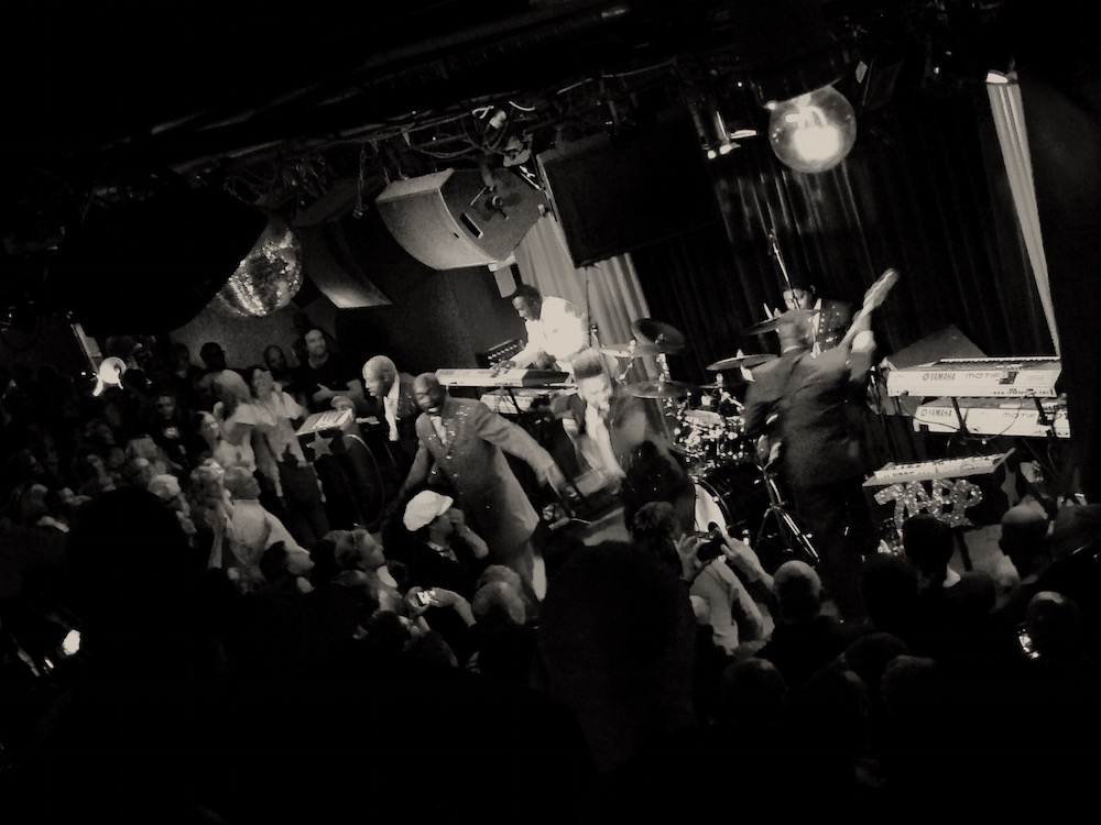Så istället för att hålla sig strikt till den av Clinton och Bootsy influerade electrofunken skuttar de sju medlemmarna omkring på den lilla scenen både som funkgubbar och lekfarbröder.