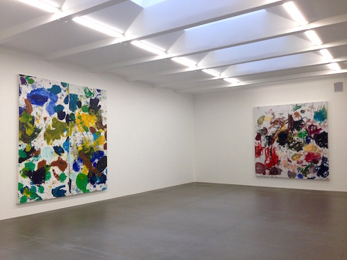 Nu är allt sådant borta. Kvar är målningar som bara är färg. Där det nästan handlar mer om det fysiska anbringandet av färgen på duken än den till synes mer eller mindre slumpmässiga form som bildas.
