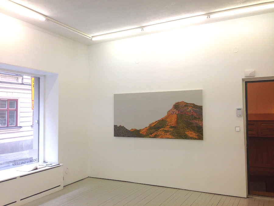 På den förra utställningen på Annaelle Gallery stod arkitektur i centrum. Nu har hon återvänt till sina uppväxtmiljöer i Norge och skildrar naturen där. Landskap sedda genom filter och fönster. Vissa bilder är formässigt identiska men skiljer sig vid närmare inspektion ordentligt såväl färgmässigt som på detaljnivå.