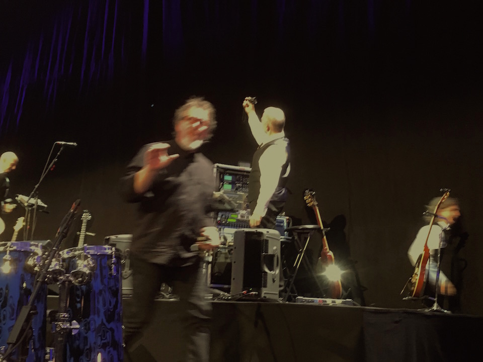 Med tre trummisar – Pat Mastelotto, Gavin Harrison och Jeremy Stacey – är det en spektakulär upplevelse. Inte minst visuellt: placeringen längst fram innebär att man kan se vem som gör vad och när.