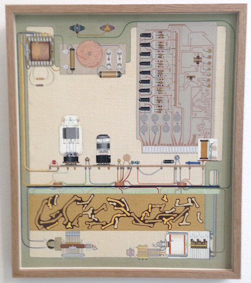 Samlingen är tätt och lite busigt hängd, grupperad med verk som lirar bra med varandra. Som Enno Halleks rustikt abstrakta målningar på utsågat trä och Gudrun Key-Åbergs Hilma af Klint-liknande färgspektrum. Lite längre bort på samma dekorativa vägg hittar man Åke Pallarps ”Hav och klippor Kattegatt”, ett annat syskon i gult, rött, blått. Ingen kunde som Pallarp bemåla plankbitar och upphöja det till en slags västerbottnisk popkonst.