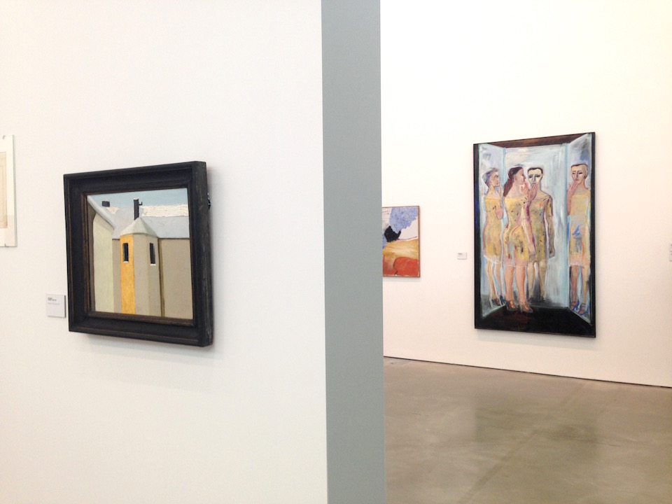 Det finns några skulpturer, Lars Englunds tångliknande modulformer i sintrat stål är lätta att missa högt uppe i taket, men framförallt är det måleri av den gamla skolan. Allvarligt syftande abstraktioner och figurationer, långt innan postmodernismen skulle komma att dödförklara måleriet.