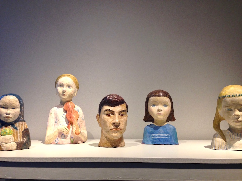 Det torra och det bleka karaktäriserar även några tidiga fina självporträtt. I samma rum finns några underbara små porträttbyster i bemålad keramik. Det är familjen och släkten som porträtterats, däribland maken Peter Weiss och systerdottern Veronica Nygren. Några söta små bemålade lerfigurer – människor, djur, blomsterkransar – gillades av Estrid Ericsson, som hade dem till försäljning på på Svenskt Tenn.