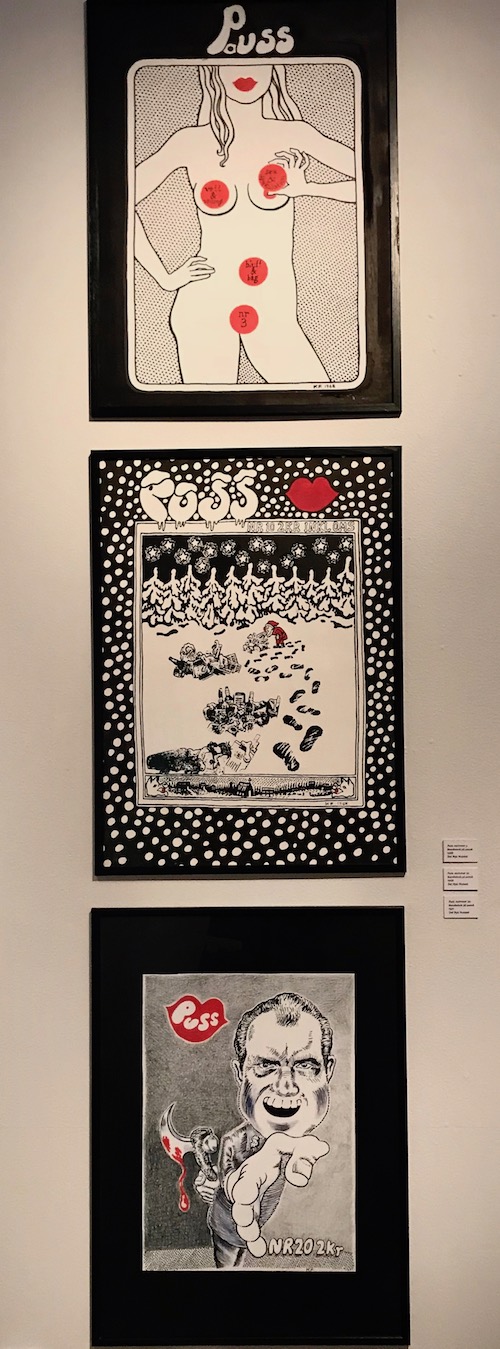 Karin Frostenson ingick i gänget som gjorde satirtidningen Puss men hade bara en ynka utställning på 60-talet. På Galleri Mejan 1969, efter avslutade studier på Konsthögskolan.