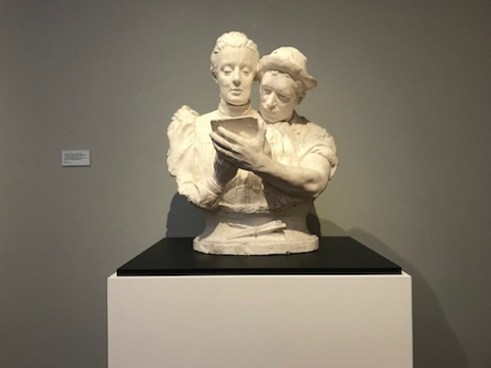 Utställningens allra mest anslående målning, ”Femme sculpteur – Carolina vid kavaletten”, är den kanadensiska konstnären William Blair Bruces porträtt av sin hustru, skulptören Carolina Benedicks-Bruce. De båda träffades i Grez 1885 och gifte sig i Stockholm tre år senare.