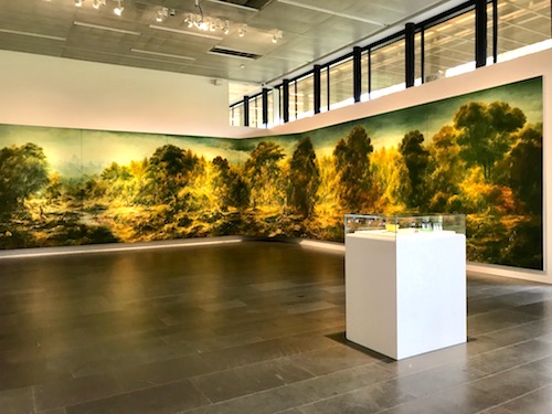 På Sven-Harrys visar han en fjorton meter lång landskapsmålning av mer pastoral karaktär, utförd i ett övertydligt romantiskt manér som går tillbaka till 1800-talet och Düsseldorf-skolans vurm för orörd natur.