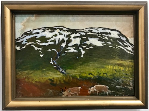Helmer Osslund är inte representerad med några riktigt kända verk, det gäller samtliga medverkande konstnärer. Men målningen av fjället Nuolja i Torneträsk, med några betande renar i förgrunden, är lika bra som Nils Nilsson Skums ”Fjällandskap med renar”.