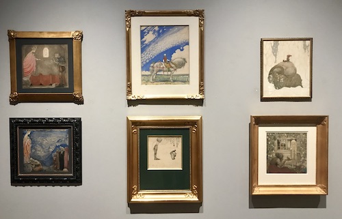 Gustaf Tenggren (1896-1970), som nyligen visades på Millesgården, har sin självklara plats i utställningen. Innan han tog båten till USA – och gjorde sig ett namn som barnboksillustratör och viktig kugge i Walt Disney-fabriken – hade han profilerat sig som en delvis John Bauer-influerad illustratör. Det ser man tydligt på de verk som plockats med. Inte så konstigt att det var Tenggren som 1917 tog över illustrerandet av, den med Bauer så starkt förknippade sagosamlingen, ”Bland tomtar och troll”.
