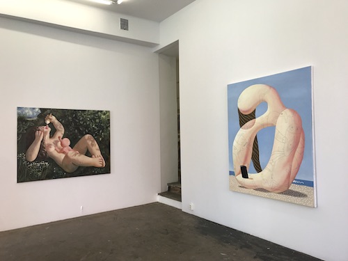 Sedan inser jag att också Henry Moore spökar i målningarna. Det ser ju ut som den brittiska skulptörens modernistiska formspråk mellan abstraktion och figuration trots att stenen och bronsen förvandlats till mjukt rosa hull.