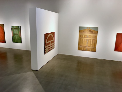 De av små rektanglar uppbyggda målningarna, de som man främst förknippar med Östlihn, äger en tidlös kvalitet men för den som redan är bekant med konstnärskapet torde det vara givande att kolla in de bilder som särskiljer sig. Här finns till exempel en utsökt målning i gult och grått med ett närmast barockt formspråk, avbildande en detalj från den ryska paviljongen i Venedig. Högaktuell då den, som ännu en konsekvens av Putins skamliga angreppskrig på Ukraina, kommer vara stängd på årets biennal.