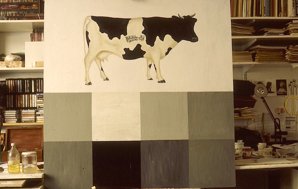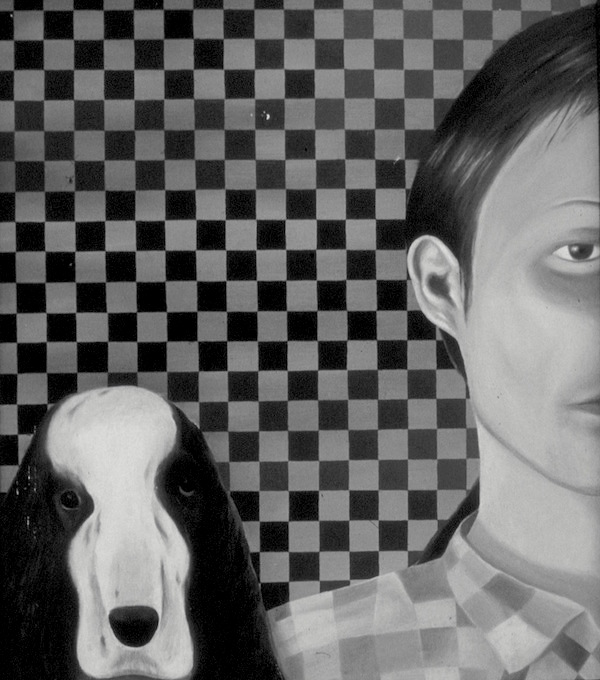 Självporträtt med Blackie. Olja på pannå, 50×40, 1981.