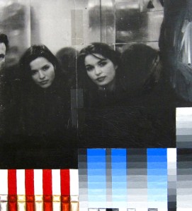 Jim, Andrea & Caroline. Akryl/fotografi på pannå, 41×33, pågående arbete 2016.