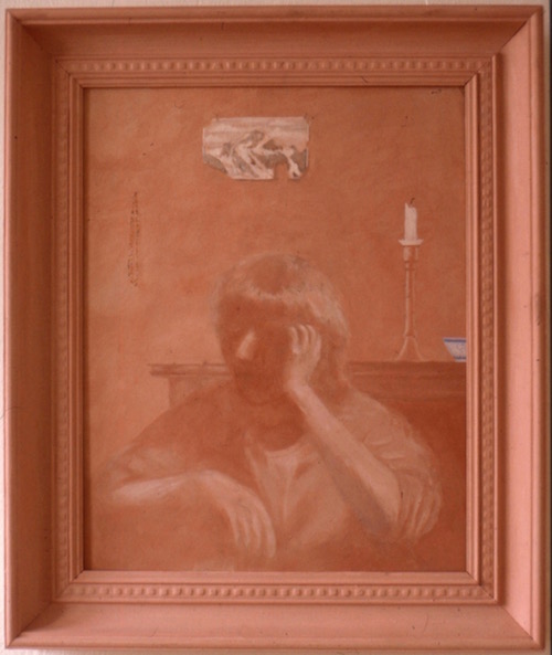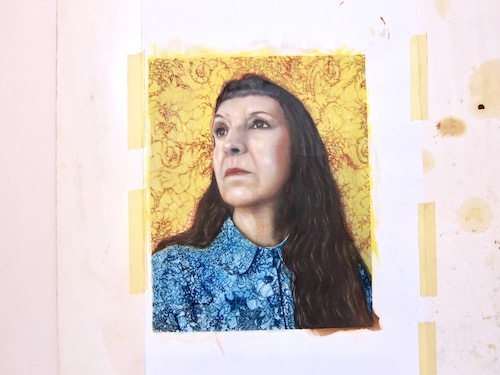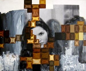 Laura. Akryl/fotografi på pannå, 40×55, pågående arbete, 2016.