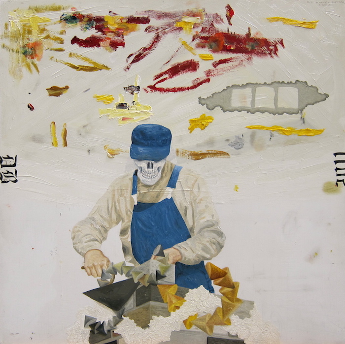 Murare, Rune Jansson-färgfläckar och Duchamp-grejor. Olja på pannå 39,5×39,5, 2011.